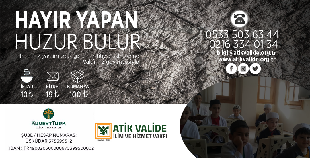 Atik Valide İlim ve Hizmet Vakfı, İstanbul Üsküdar’da hafızlık, arapça ve islami ilimler eğitimleri veren, ilmi sohbetlerle halkın bilinçlendirildiği, yurtiçinde ve yurtdışında yapmış olduğu insani yardım çalışmaları ile insanlığın yaralarına merhem olmaya çalışan İsmailağa Cemati’ne mensup kıymetli hocaların yönetiminde bir kurumdur.